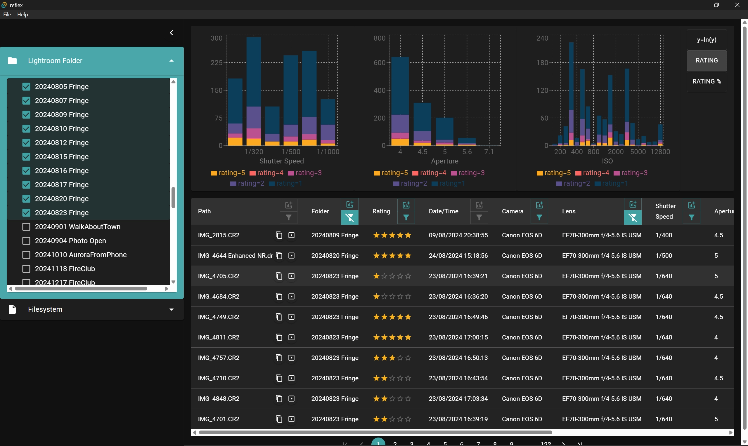 Reflex is my under-development app which lets you learn about the photographs you take. Do you really use that lens? Which apertures tend to produce your most-loved photos?